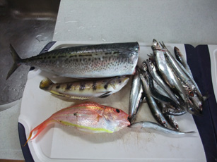釣果:マダイ1、マゴチ2、キス1、カワハギ2、イワシ多数