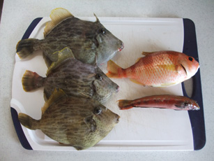 釣果:カワハギ3、タマガシラ1、トラギス1