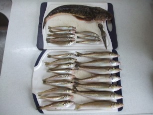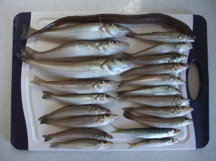 釣果:アナゴ1、キス18、イワシ2