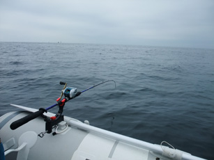 前回不具合のあった船外機を横浜の専門店に持ち込み修理をしてもらった。プロペラが悪いとのこと、部品代・作業台で8000円だった。今日はその船外機のテストを兼ねての釣行、いつもの諸磯にむかう。出港後すぐにフルスロットルにするがエンジンが空転するようなことはない。どうやらなおったようだ。そのまま諸磯定置網南の岩礁帯に向かう。途中いわしの反応が全くないのが気になったが、15m位からコマセ、ひとつテンヤを始める。全く魚信がない時間が続く。カワハギの遊漁船が集まってきたところをみるとカワハギのポイントだったらしい。