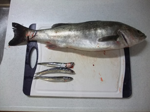 スズキ50cm、サビキで釣れた。