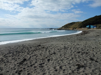 和田浜。砂浜が長い。波がある。でも駐車場は無料。