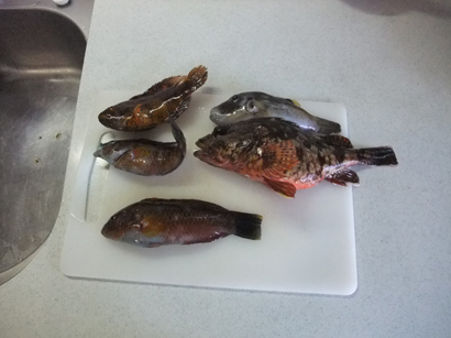 釣果 カサゴ1、ベラ3、キタマクラ1
