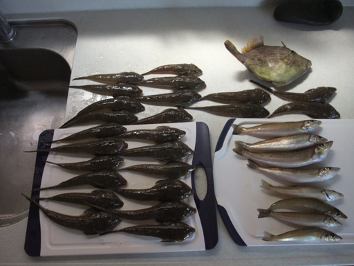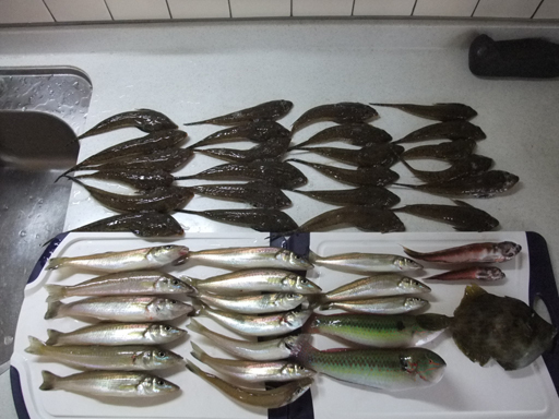 釣果:メゴチ24、キス16、トラギス2、ベラ2、カワハギ1