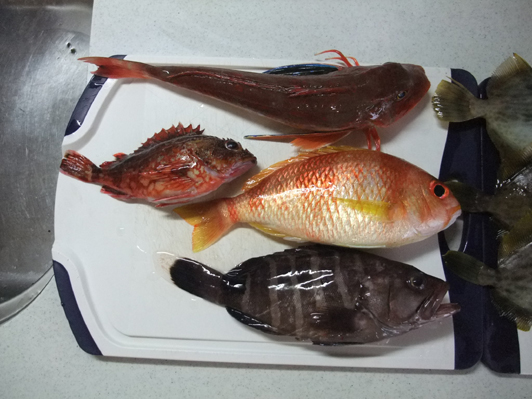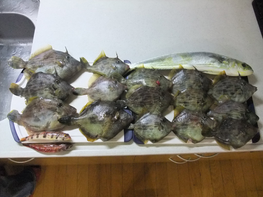 釣果:かわはぎ9、タマガシラ1、ホウボウ1、ハタ1、カサゴ1