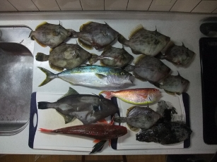 釣果:イナダ1、ホウボウ1、イトヨリ1、ウマヅラハギ1、かはわぎ9、スミイカ1