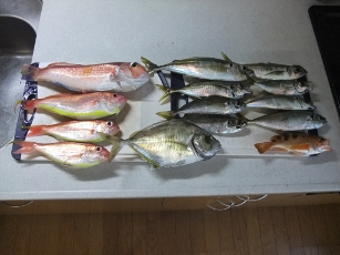 釣果:アマダイ1、カイワリ1、イトヨリ3、アジ8、メバル1
