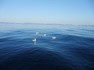 今日は午後から予報通り凪でカモメが釣れた魚を狙ってボートに集まってきた。
