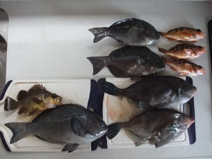 Y氏はメバル一荷、メジナ、ウマヅラなど好調なスタート。その後もウマヅラ追釣し終日魚信が途絶えなかった。