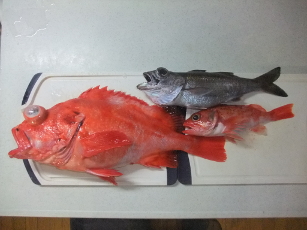 釣果:アコウダイ1、ムツ1、ユメカサゴ1