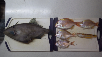釣果:ウマヅラハギ1、キダイ4、トラギス1
