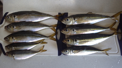 移動途中で巨大反応を発見!その上を流すとアジがつれた。