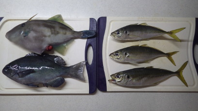 釣果:アジ3、ウマヅラ1、メジナ1