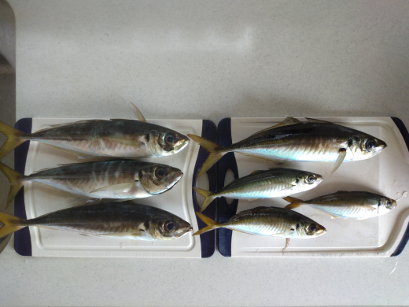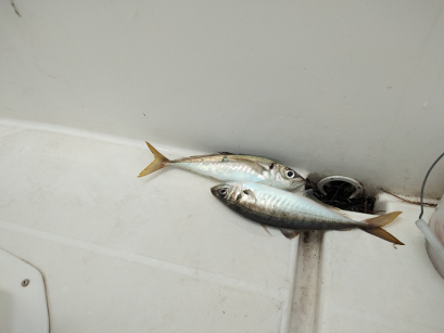 サビキを用意してイワシ釣り。ポツポツつれる。