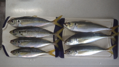 日ノ出とともに出港、剣崎アジポイントに向かう。中層に反応があっていい感じ。1投目から竿先が海面に突き刺さる。