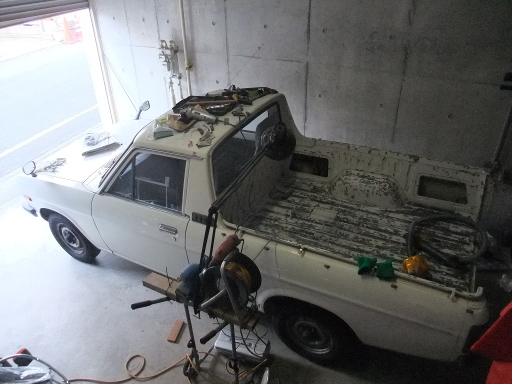 | 2014/1/13 タイコート・プライマー塗布。荷台だけでなくシャシーにもサビがひどいことに気付く。 | |