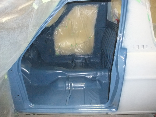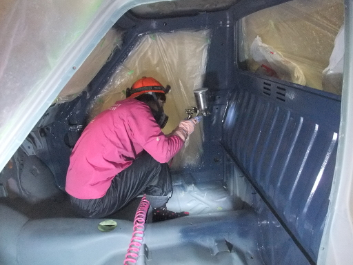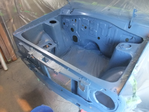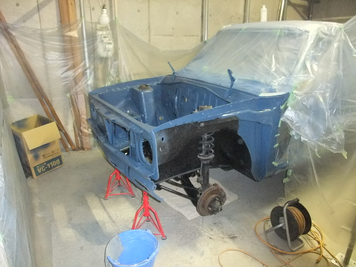 | 2014/12/21 室内塗装。インダンスレンブルー200g+ホワイト100g+ゼットブラック50g。反対側から塗り残しを塗る予定。 | |