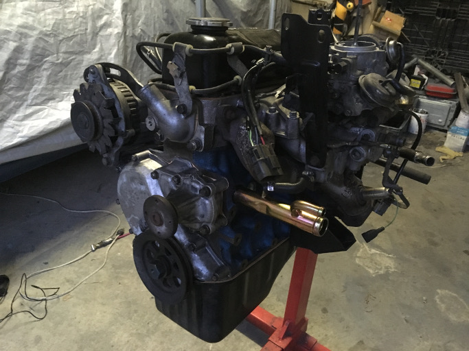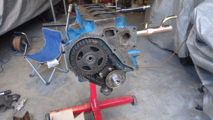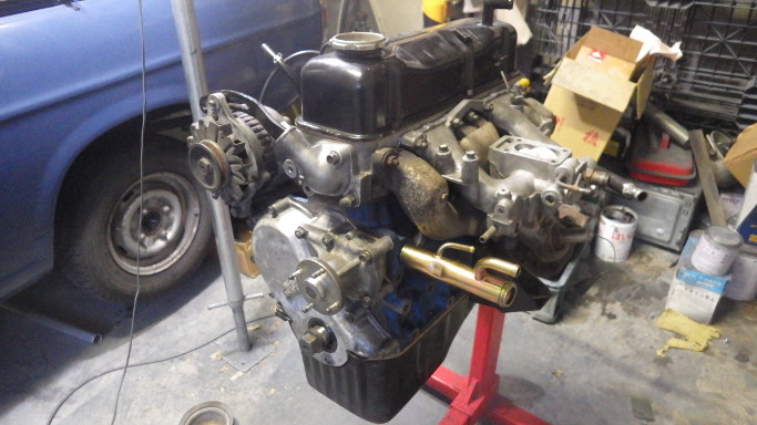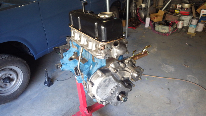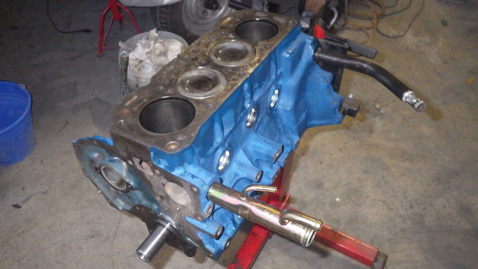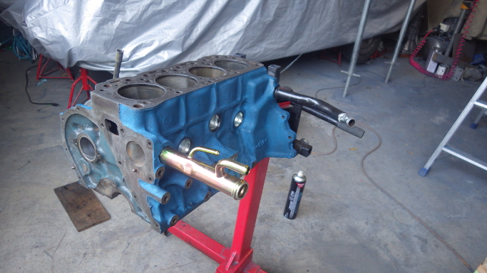 | 2017/12/10 A15! シリンダーブロックは青色で塗装。コアプラグとウォーターパイプ(前)は新品。パイプ後ろは廃番なので塗装して再利用。 | |