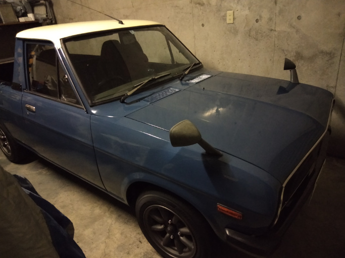 | 2018/10/31 ボンネットを鉄製に変更した。ヤフオクで社外品を購入し塗装。ボンネットロックも純正品に変更。写真だと微妙に色が違うように見える。 | |