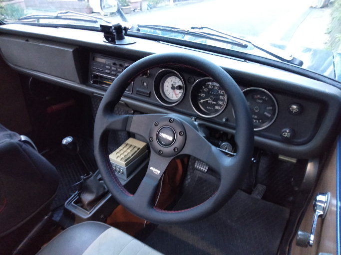 | 2018/11/25 ステアリングホイールをMOMOに変更。アース線はホースバンドで固定した。 | |