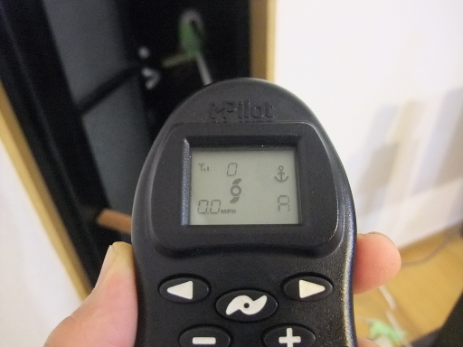 | 勝手口からヘッドを出してしばらくするとGPS信号受信を示すバーが表示された。スポットロックもできた。移動速度も0.0から0.1ノットで安定している。 | |