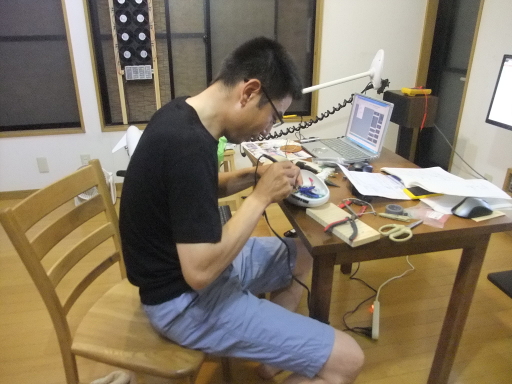 | 居間での作業風景。家族はこのようなことに一応理解がある。ちなみにこの机は食卓として使っている。 | |