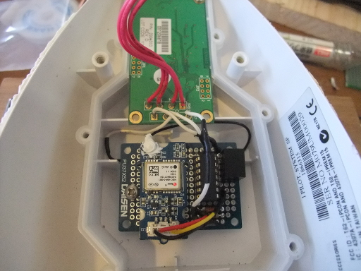 | GPSボードが機能しているかどうかの確認。コネクターのピンアサインを調べてArduinoをつないでみる。あらゆるBaud rateを試すが文字化け。直接PCとUSB経由でつなぐと測位できた。しかししばらくするとボードからの信号が途絶える。GPSレシーバu-blox LEA-5のデータシートを見るとUSBの供給電圧は最大3.8V。USBは5Vだと思って5Vいれてしまったのが良くなかったか。データシートはよく読めということ。勉強になりました。この時点でGPSボードが機能しているかどうかは検討できなくなってしまった。しかしながら通信プロトコルはNMEA0183、Baud rateは4800bpsと判明した。 | |
